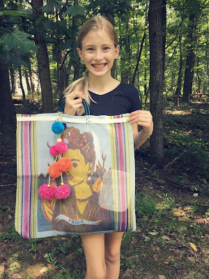 After the opening ceremony we handed out the morning gifts. Today's delightful morning gift was a pom pom charm for their Frida Kahlo mercado bags. The pom charms were sent to the girls from the wonderful folks at Land's End. Here is their message to the girls...